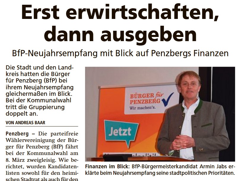 Mit Bürgermeisterkandidat Amin Jabs und Landratskandidat Dr. Timo Böge geht die Parteifreie Wählervereinigung „Bürger für Penzberg“ e.V. als einzige Stadtratfraktion doppelt in den Wahlkampf mit klarem Wahlprogramm und Prioritäten!